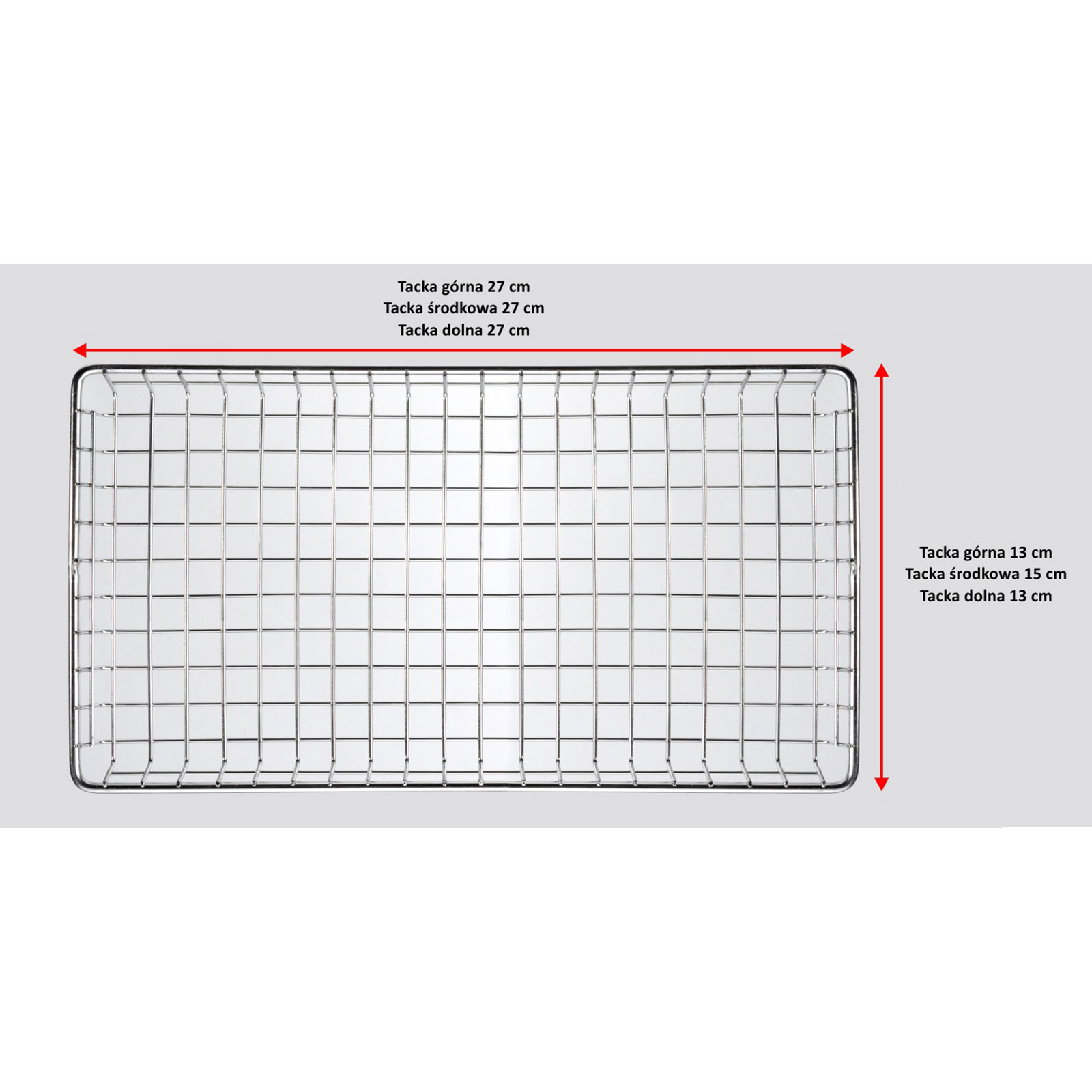 - Wymiary tacek: górna: 13 x 27 cm | środkowa: 15 x 27 cm | dolna: 13 x 27 cm